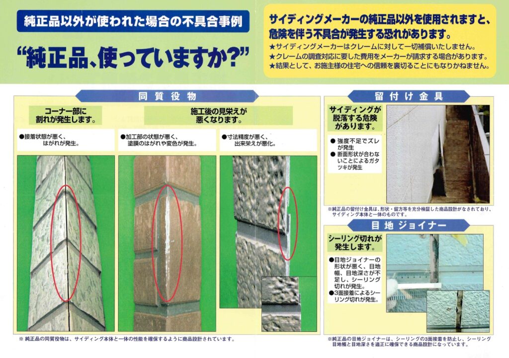 (一社)日本窯業外装材協会では、メーカーの純正品以外の出隅材など使用に関する注意喚起を行っています。