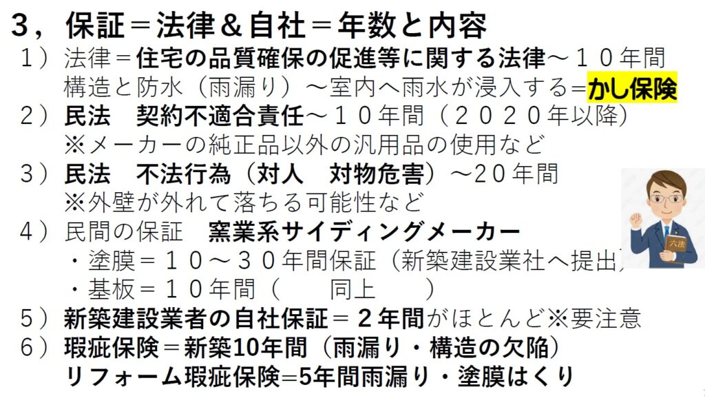 ・ハウスメーカーに保証をして貰えないかと思っておりますが、聞いておいた方が良い事などはございますでしょうか。